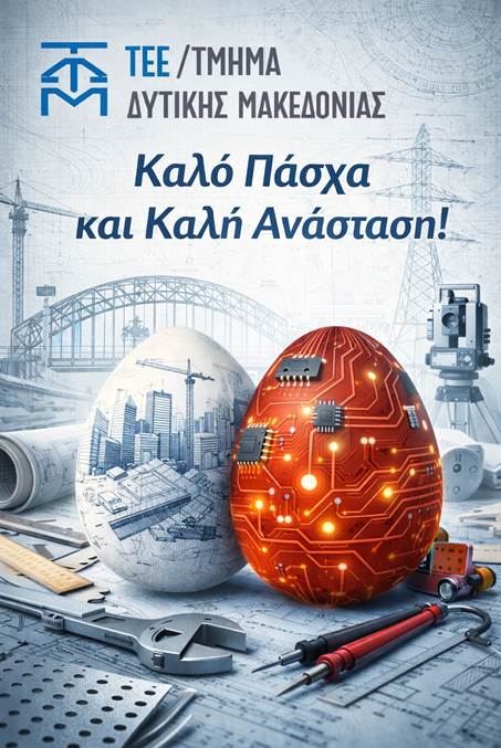 Ο Πρόεδρος του ΤΕΕ/Τμήματος Δυτικής Μακεδονίας, Στέργιος Κιάνας, και η Διοικούσα Επιτροπή του ΤΕΕ/ΤΔΜ σας αποστέλλουν τις θερμότερες ευχές τους για το Πάσχα.